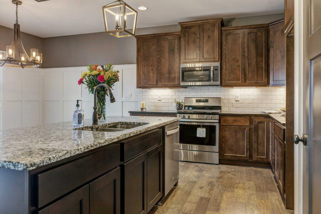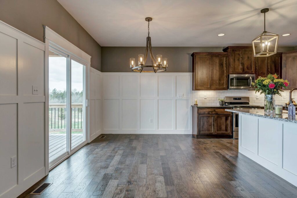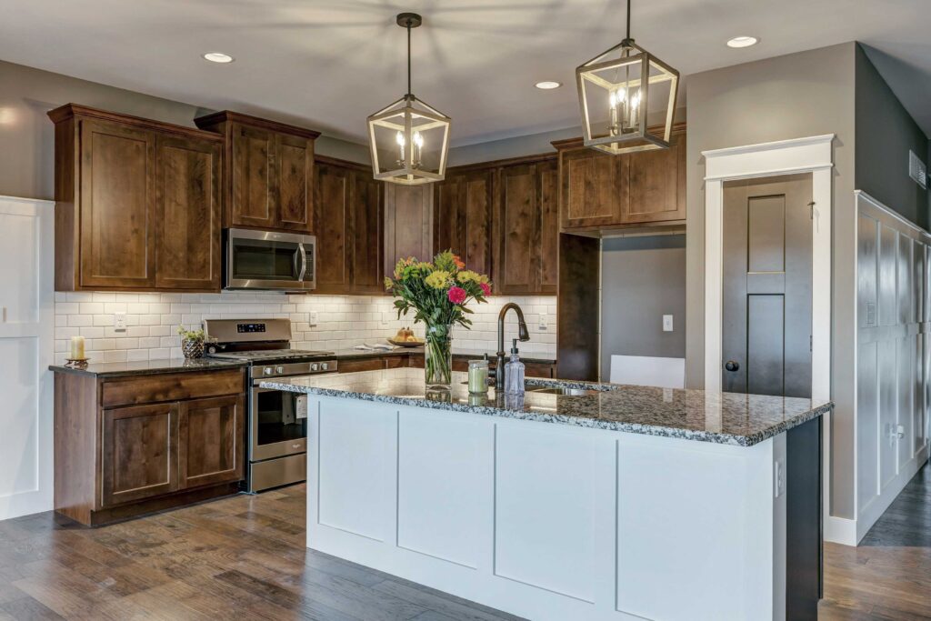 - Subway Tile at Fireplace and Kitchen Back Splash